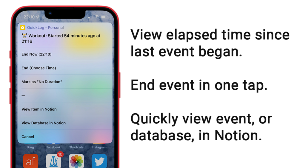 - Track events and activities without needing to open Notion